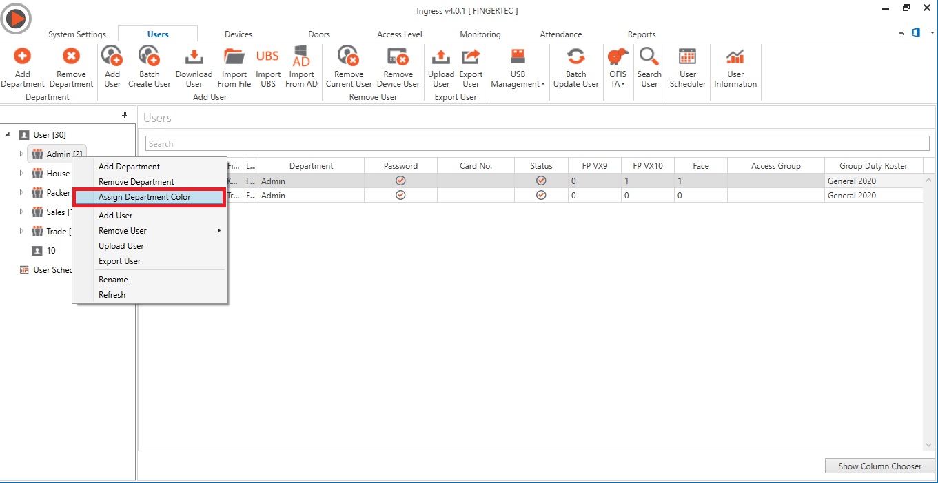 11. Added the Favourite option for Department Tree View which allow the assignation of preferred colour to the Department