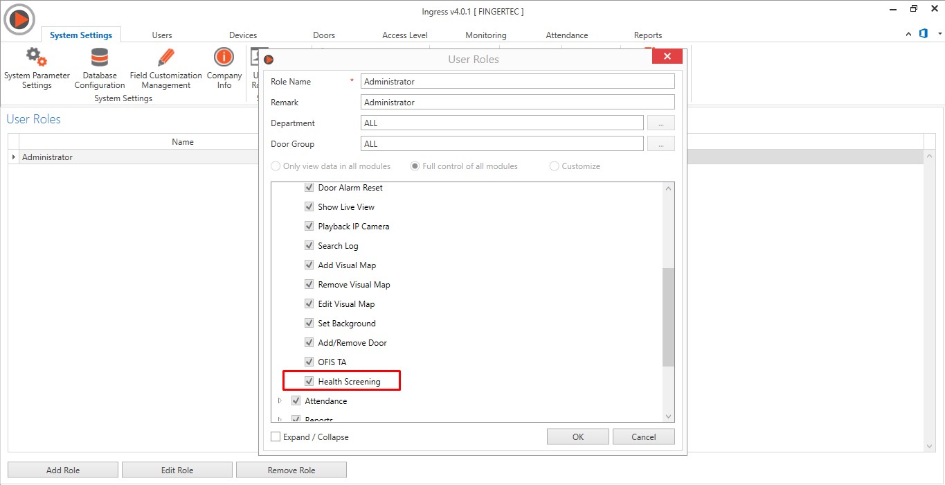 12. Added Health Screening Right under the User Role