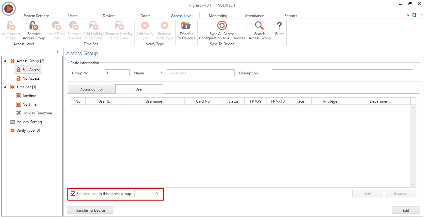 13. Added the option to set user limit for each access group