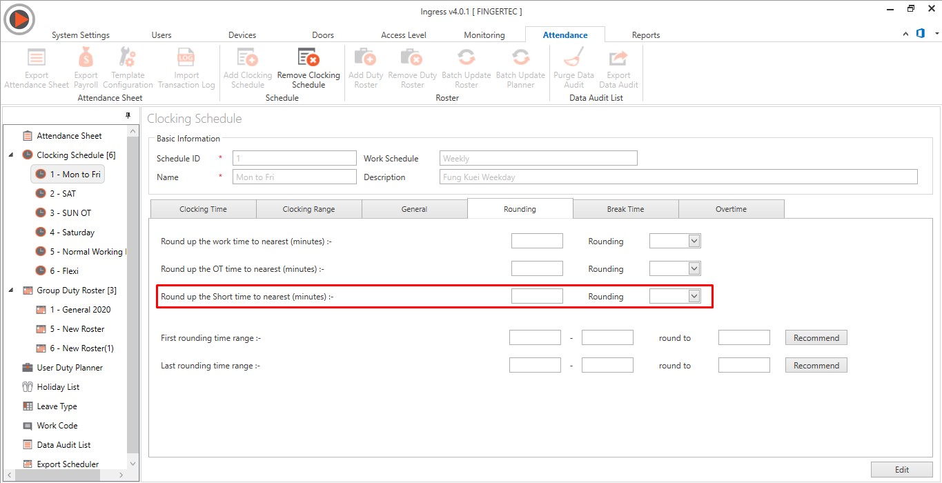5. Added the new Rounding option for Short in Weekly, Daily Schedule Settings