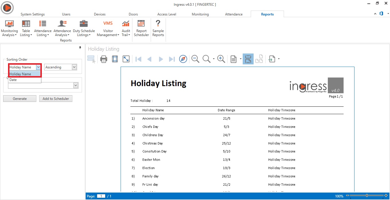 3. Added the Holiday Date in the Sorting Order for Holiday Listing Report