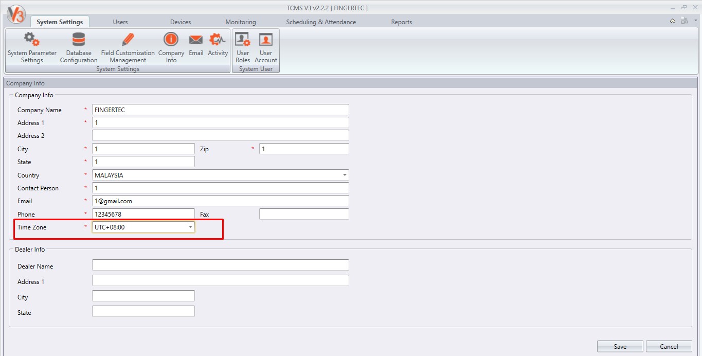 20. Added Time Zone in Company Info at System Settings