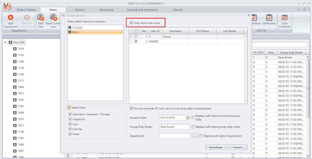 23. Added Select New User only when Download User from Device