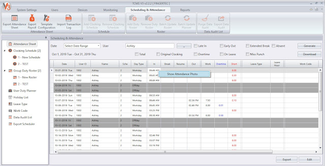 12. Enhanced Attendance Sheet by allowed right click on clocking time to Show Attendance
