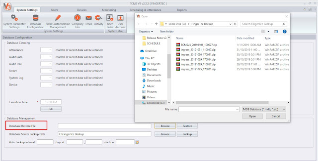 ii) Added zip file can be select for restore in MDB