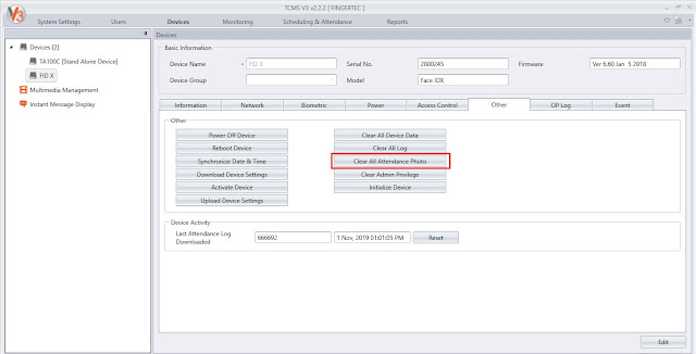 9. Added "Clear All Attendance Photo" in Device and Batch Device Operation